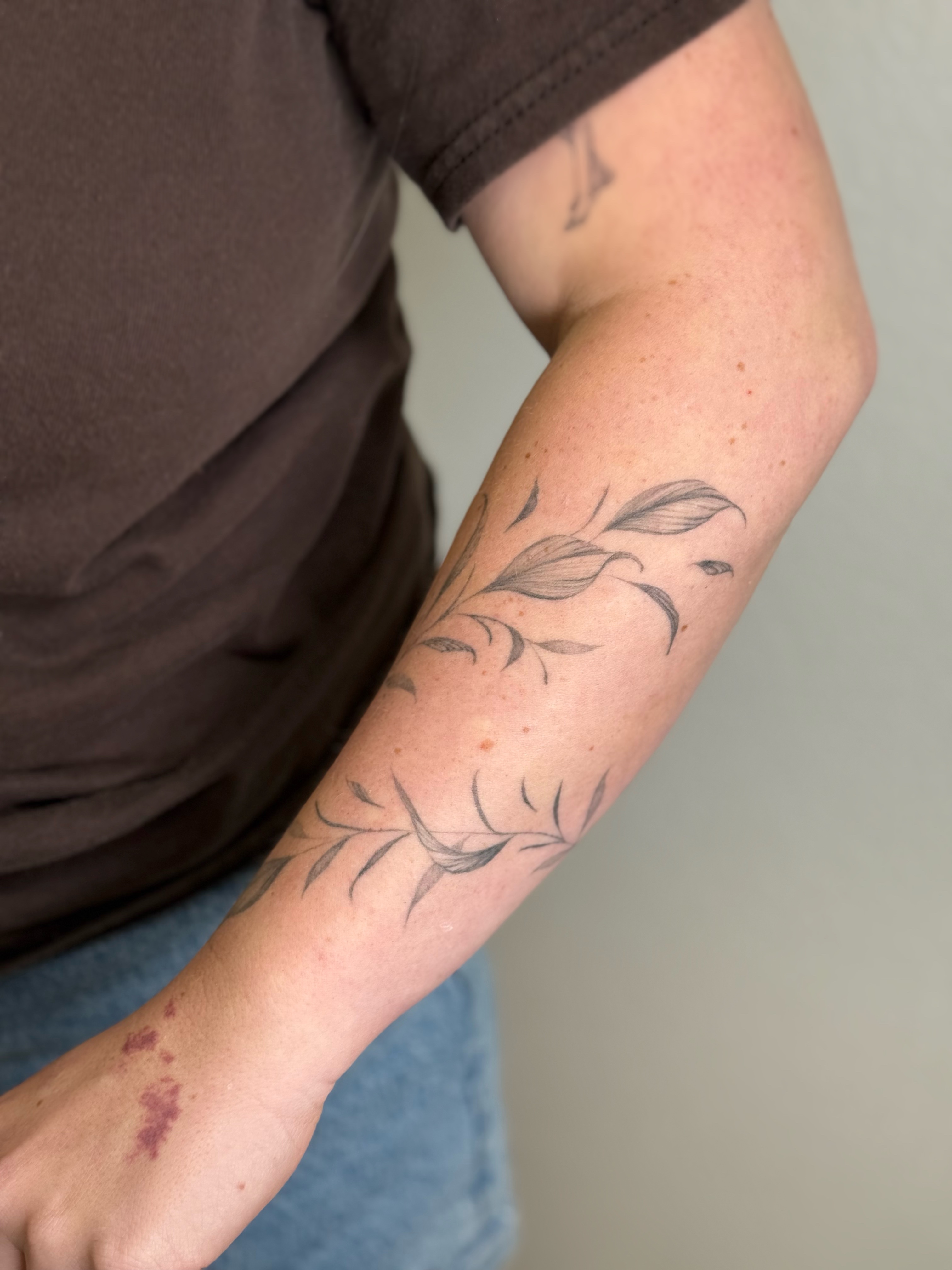 Each vine and leaf is drawn directly on the skin for intentional placement, elegant structure, and long-term healed softness.